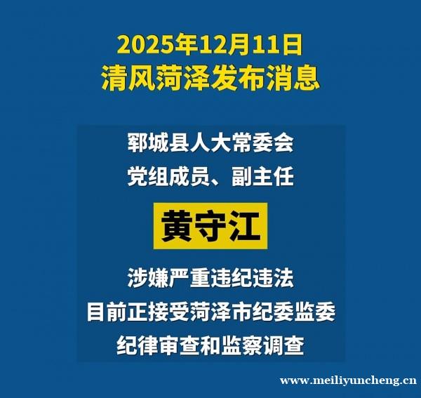 郓城县人大常委会党组成员、副主任黄守江涉嫌严重违纪违法,目前正接受菏泽市纪委监委纪律审查和监察调查。 联系我时,请说是在魅力郓城看到的,谢谢!